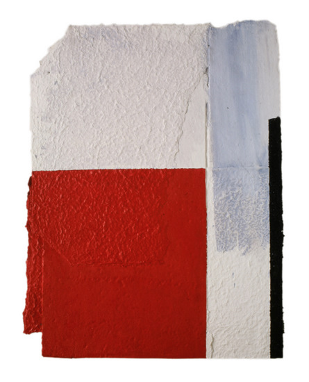 Construcción en papel hecho a mano y pintado al óleo encolado a tabla
