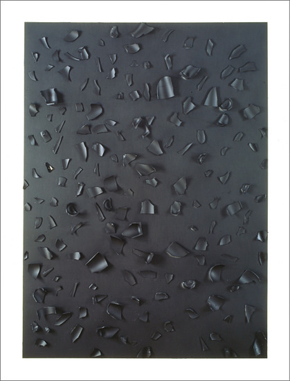 Construcción en vidrio y esmalte sintético aplicado con spray sobre tabla