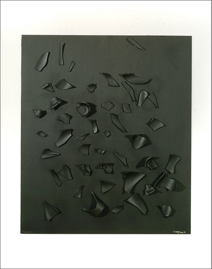 Construcción en vidrio y esmalte sintético aplicado con spray sobre tabla