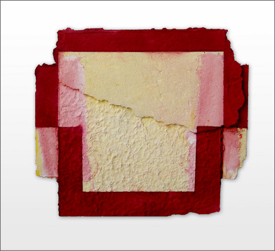 Construcción en papel hecho a mano y pintado al óleo encolado a tabla