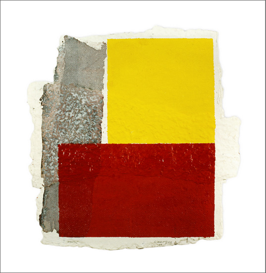 Construcción en papel hecho a mano y pintado al óleo encolado a tabla