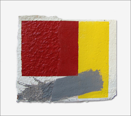 Construcción en papel hecho a mano y pintado al óleo encolado a tabla