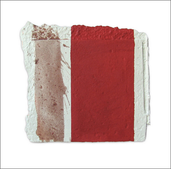 Construcción en papel hecho a mano y pintado al óleo encolado a tabla