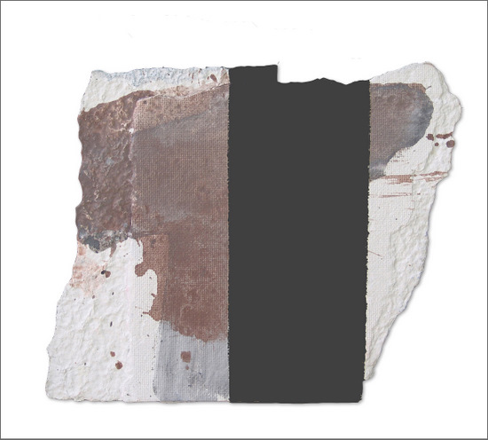 Construcción en papel hecho a mano y pintado al óleo encolado a tabla