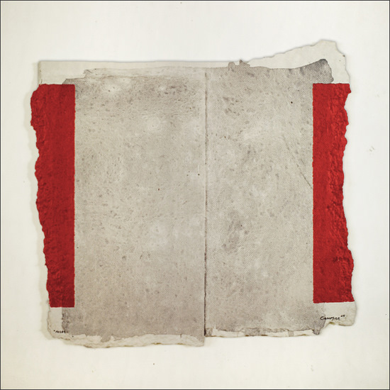 Construcción en papel hecho a mano y pintado al óleo encolado a tabla