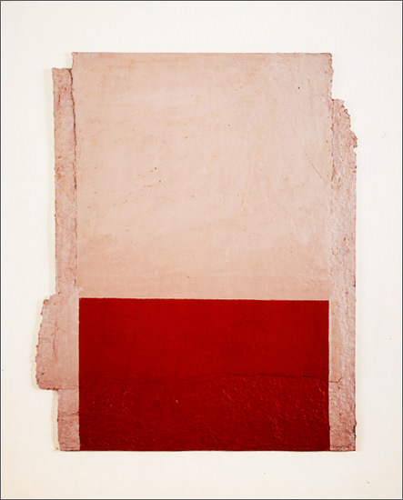 Construcción en papel hecho a mano y pintado al óleo encolado a tabla