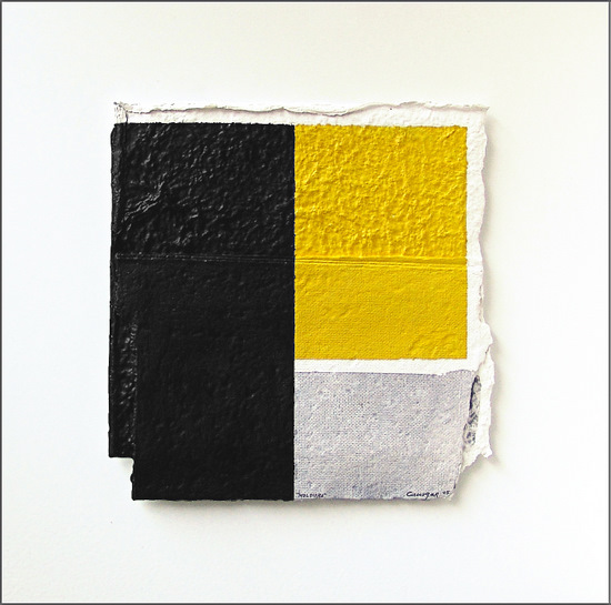 Construcción en papel hecho a mano y pintado al óleo encolado a tabla
