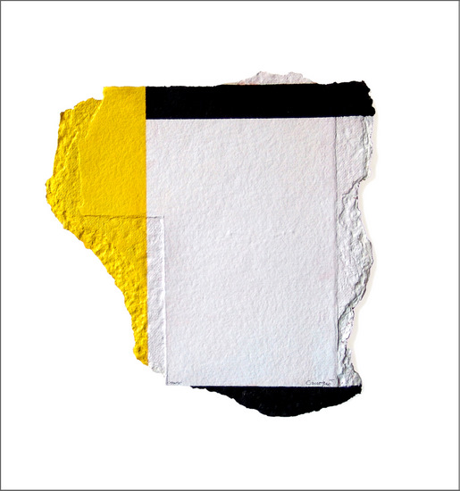 Construcción en papel hecho a mano y pintado al óleo encolado a tabla