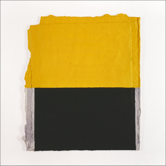 Construcción en papel hecho a mano y pintado al óleo encolado a tabla
