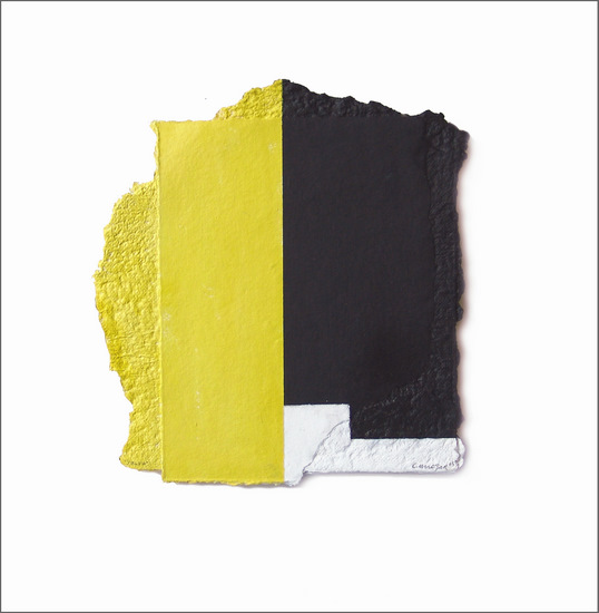 Construcción en papel hecho a mano y pintado al óleo encolado a tabla