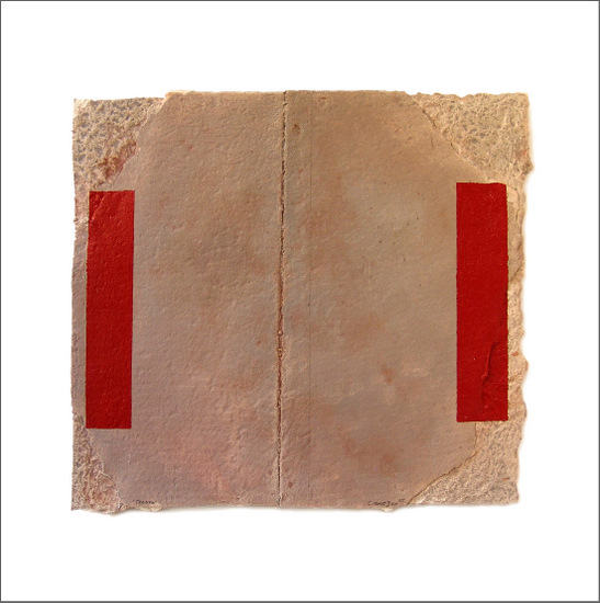 Construcción en papel hecho a mano y pintado al óleo encolado a tabla