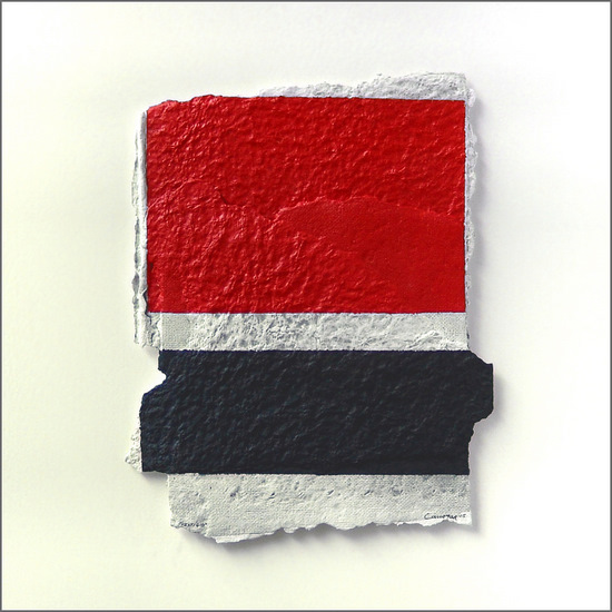Construcción en papel hecho a mano y pintado al óleo encolado a tabla