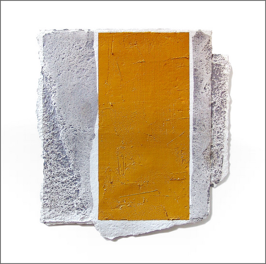 Construcción en papel hecho a mano y pintado al óleo encolado a tabla