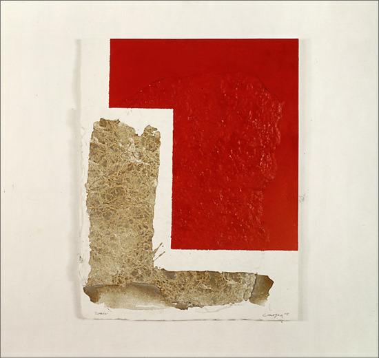 Construcción en papel hecho a mano y pintado al óleo encolado a tabla