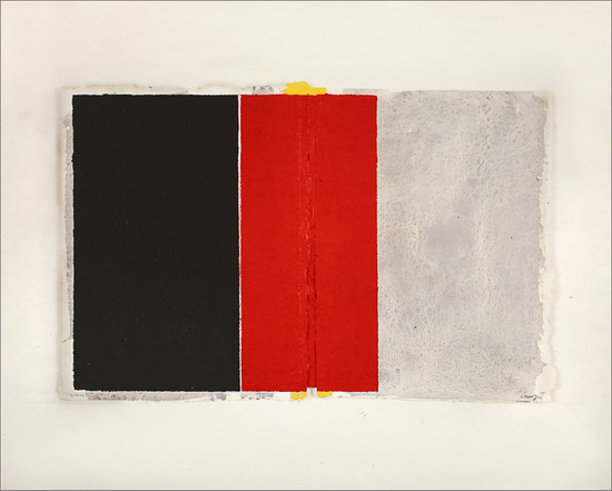 Construcción en papel hecho a mano y pintado al óleo encolado a tabla
