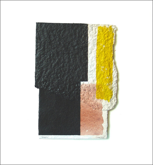 Construcción en papel hecho a mano y pintado al óleo encolado a tabla