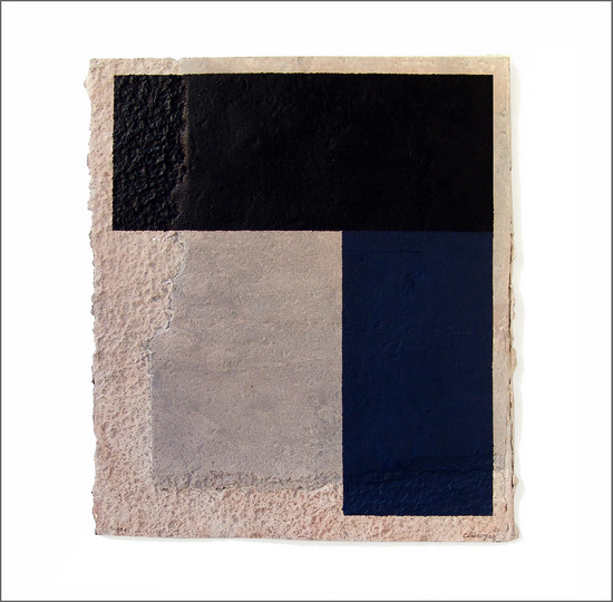 Construcción en papel hecho a mano y pintado al óleo encolado a tabla