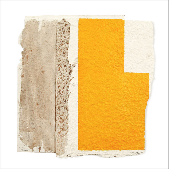 Construcción en papel hecho a mano y pintado al óleo encolado a tabla