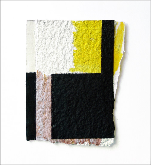 Construcción en papel hecho a mano y pintado al óleo encolado a tabla