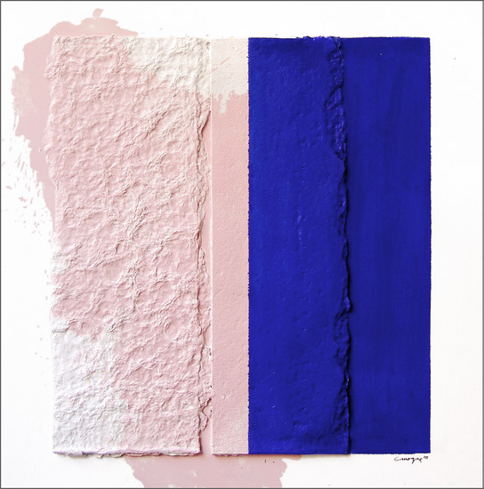 Construcción en papel hecho a mano y pintado al óleo encolado a tabla
