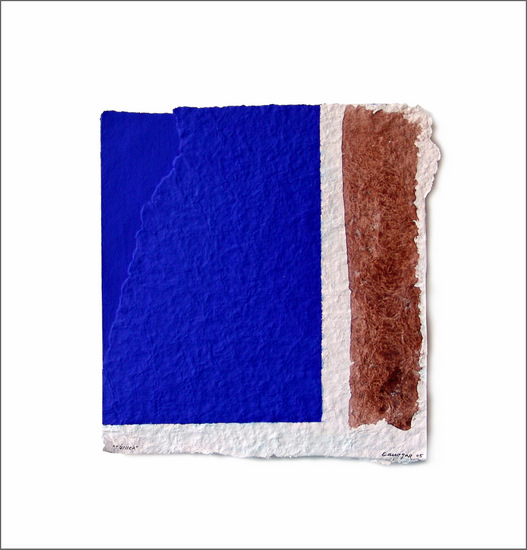 Construcción en papel hecho a mano y pintado al óleo encolado a tabla