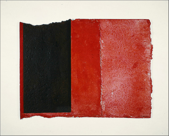 Construcción en papel hecho a mano y pintado al óleo encolado a tabla