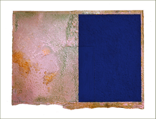 Construcción en papel hecho a mano y pintado al óleo encolado a tabla