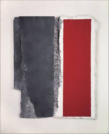 Construcción en papel hecho a mano y pintado al óleo encolado a tabla