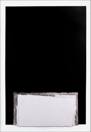 Construcción en papel hecho a mano y pintado al óleo encolado a tabla