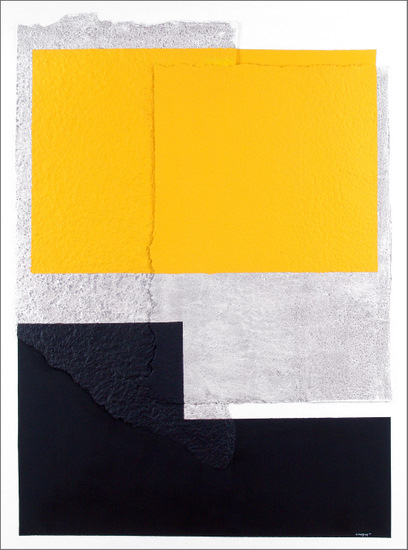 Construcción en papel hecho a mano y pintado al óleo encolado a tabla