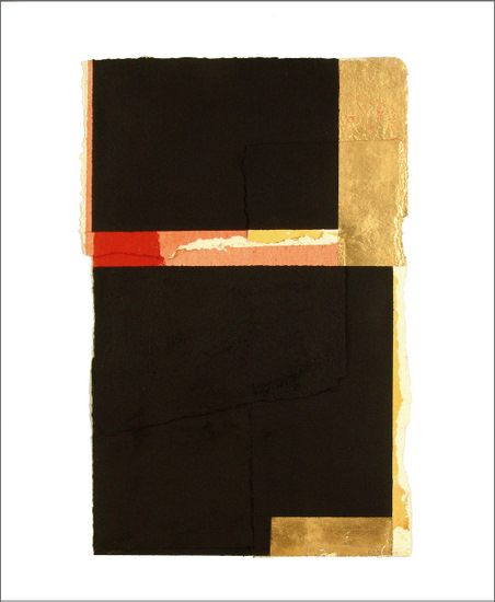 Collage de papel hecho a mano, óleo y pan de oro sobre tabla