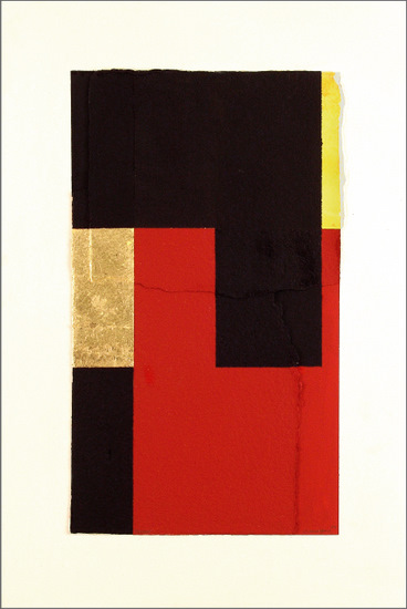 Construcción en papel hecho a mano, óleo y pan de oro sobre tabla