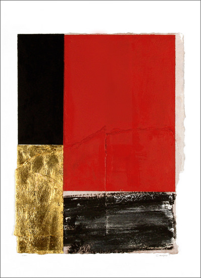 Construcción en papel hecho a mano, óleo y pan de oro sobre tabla