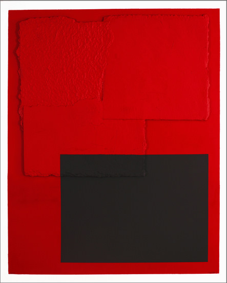 Construcción en papel hecho a mano y pintado al óleo encolado a tabla