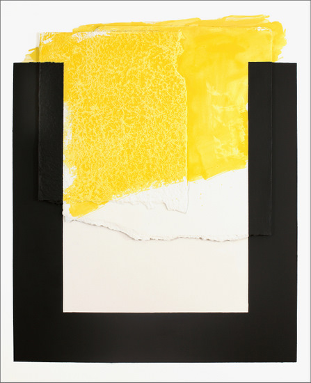 Construcción en papel hecho a mano y pintado al óleo encolado a tabla