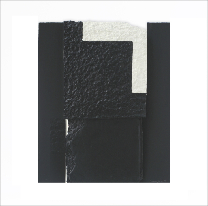 Construcción en papel hecho a mano y pintado al óleo encolado a tabla