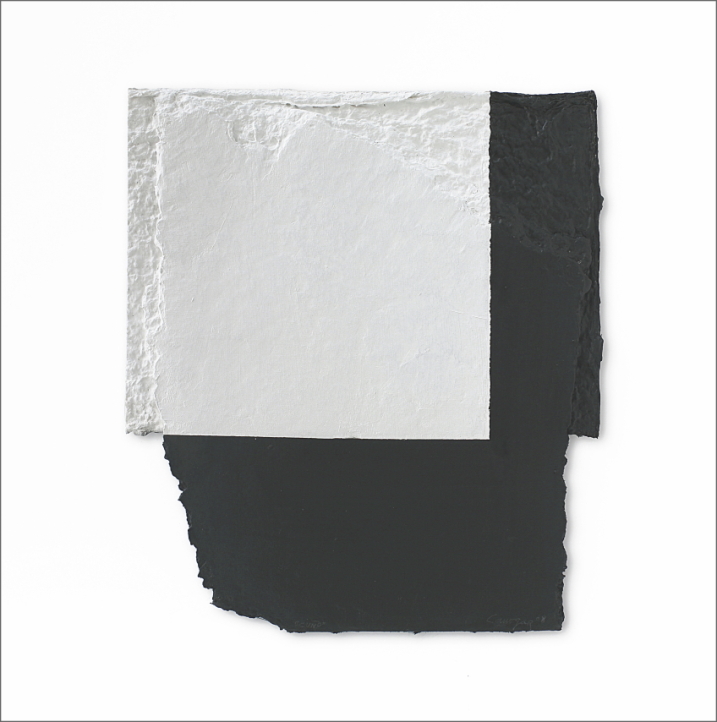 Construcción en papel hecho a mano y pintado al óleo encolado a tabla
