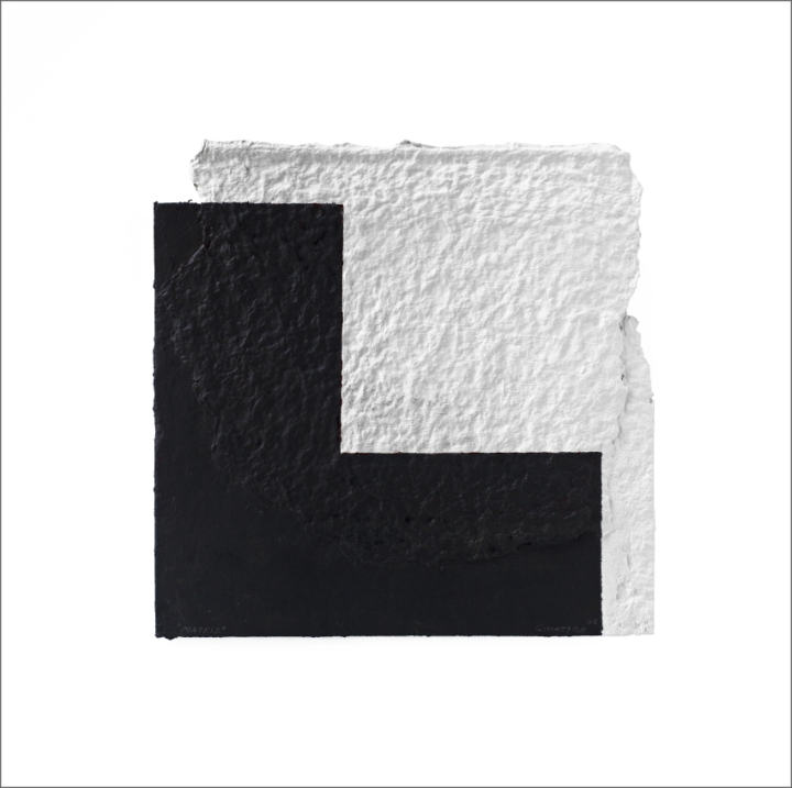 Construcción en papel hecho a mano y pintado al óleo encolado a tabla