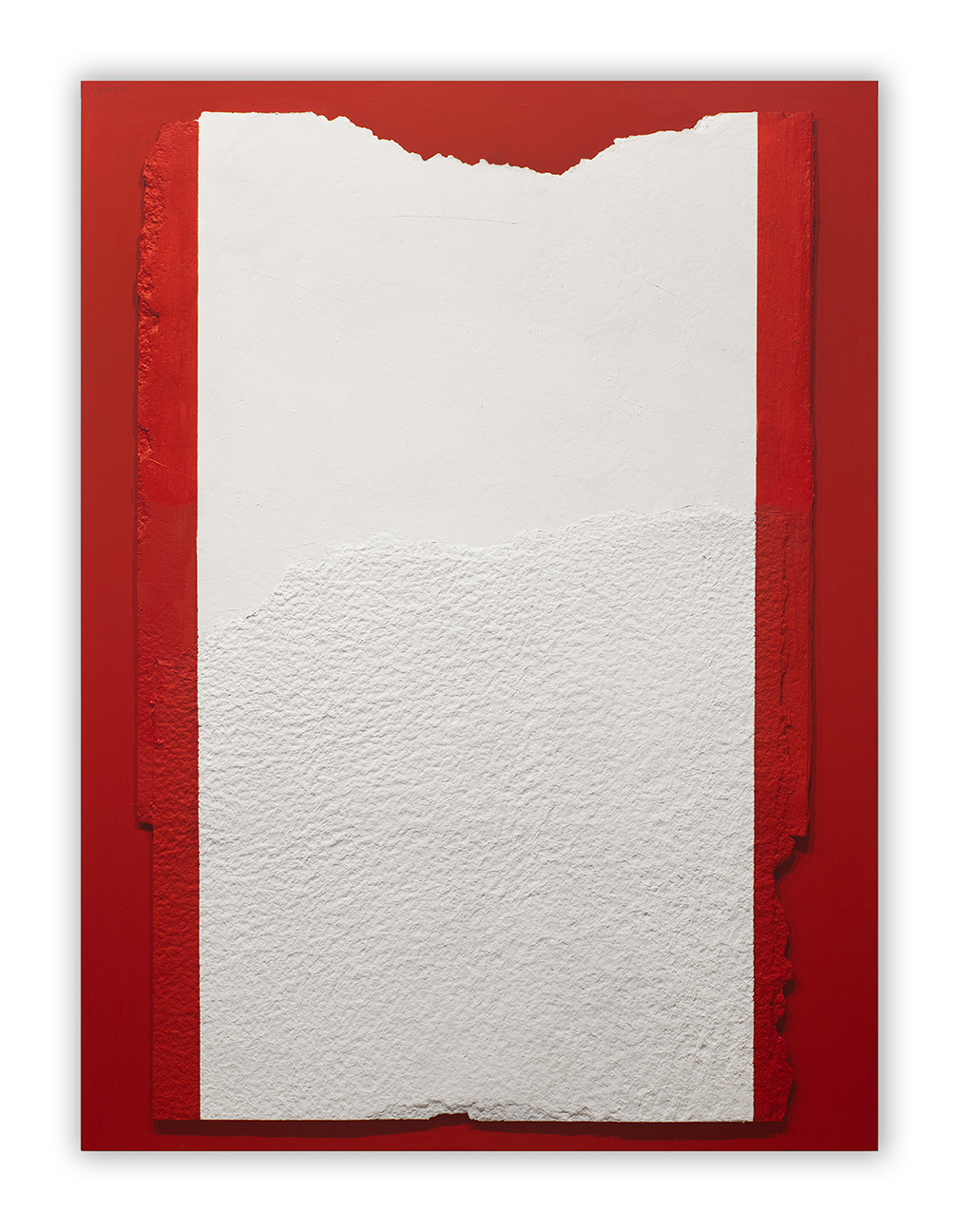 Construcción en papel hecho a mano y pintado al óleo encolado a tabla