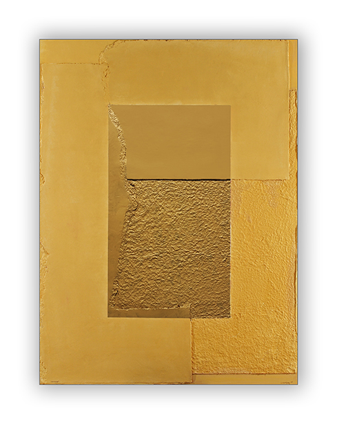 Construcción en papel hecho a mano y pintado al óleo encolado a tabla