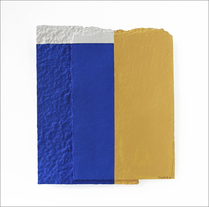 Construcción en papel hecho a mano y pintado al óleo encolado a tabla