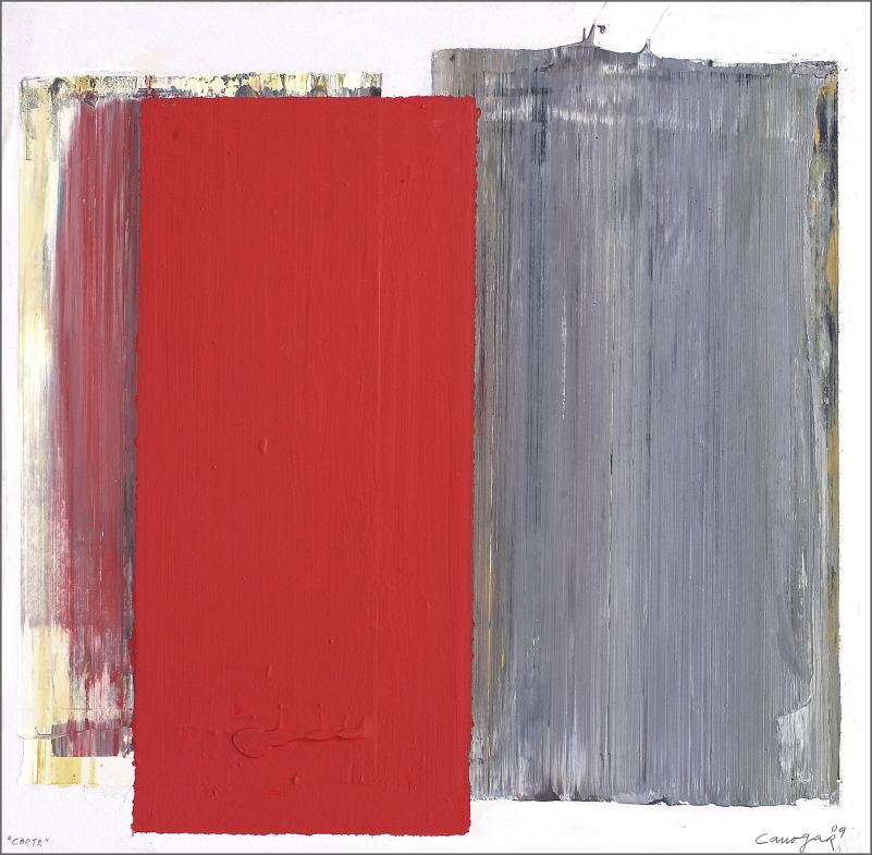 Firmado y fechado áng. inf. dcha.: “09 / Canogar”; inscripción áng. inf. izda.: “‘CORTE’”