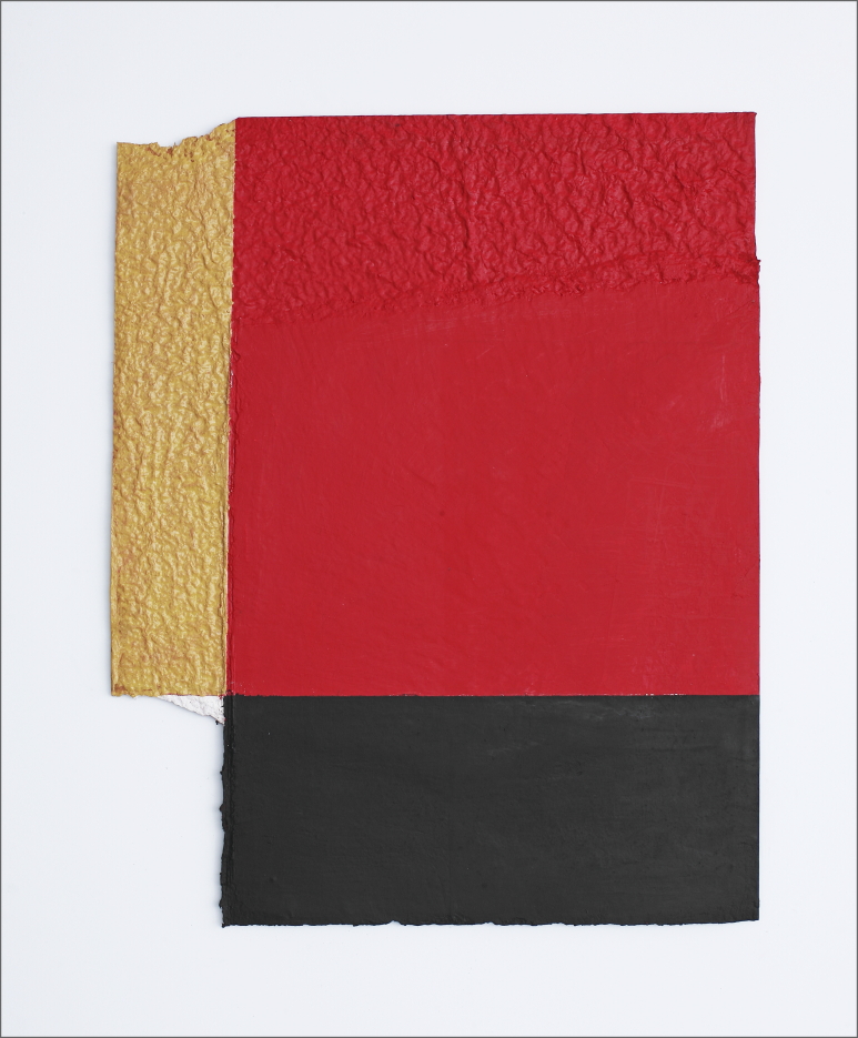 Construcción en papel hecho a mano y pintado al óleo encolado a tabla