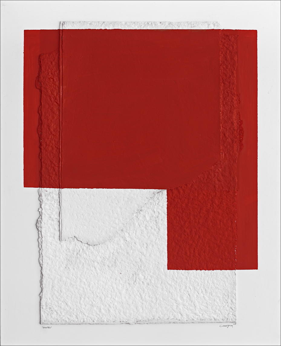 Construcción en papel hecho a mano y pintado al óleo encolado a tabla