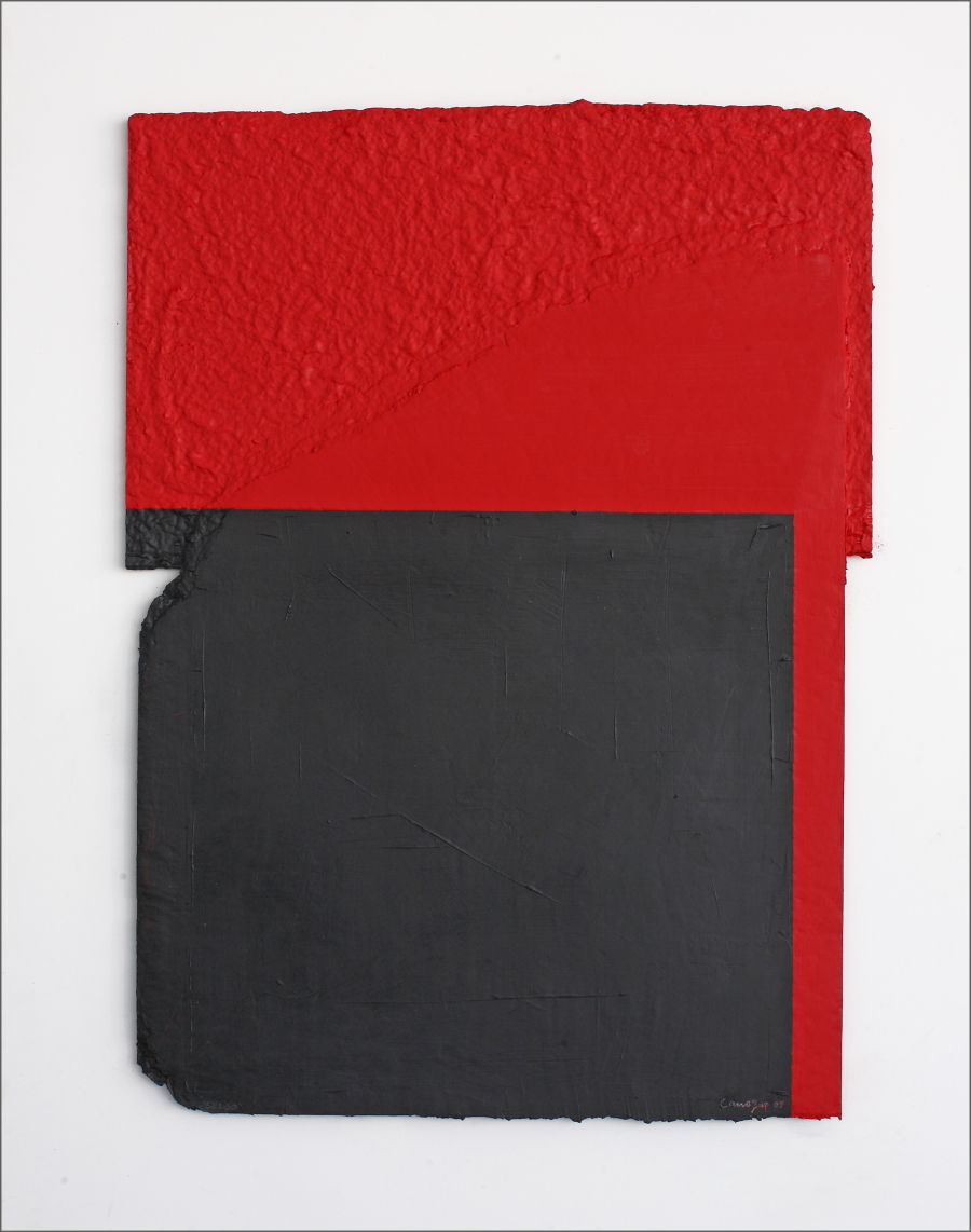 Construcción en papel hecho a mano y pintado al óleo encolado a tabla