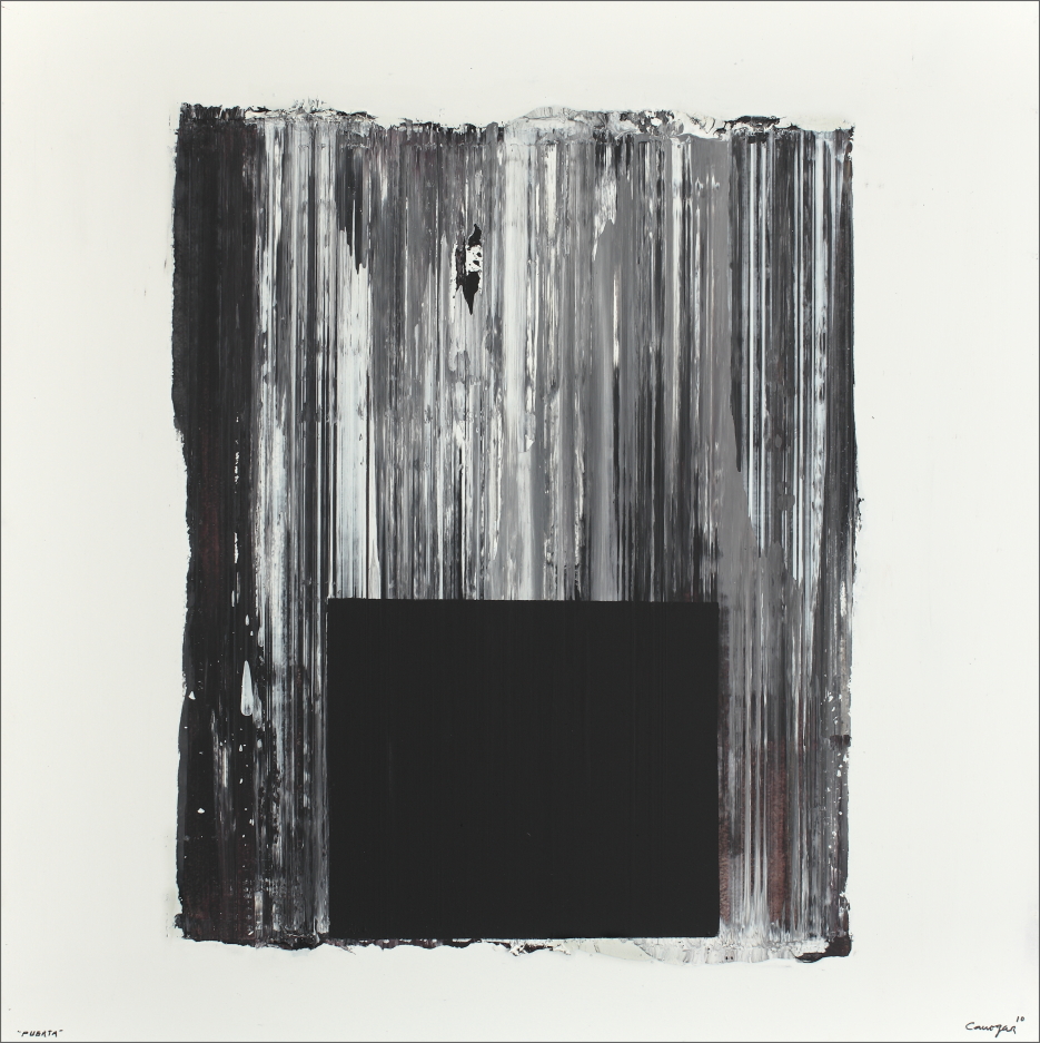 Firmado y fechado zona. inf. dcha.: “10 / Canogar”; inscripción zona inf. izda.: “‘PUERTA’”