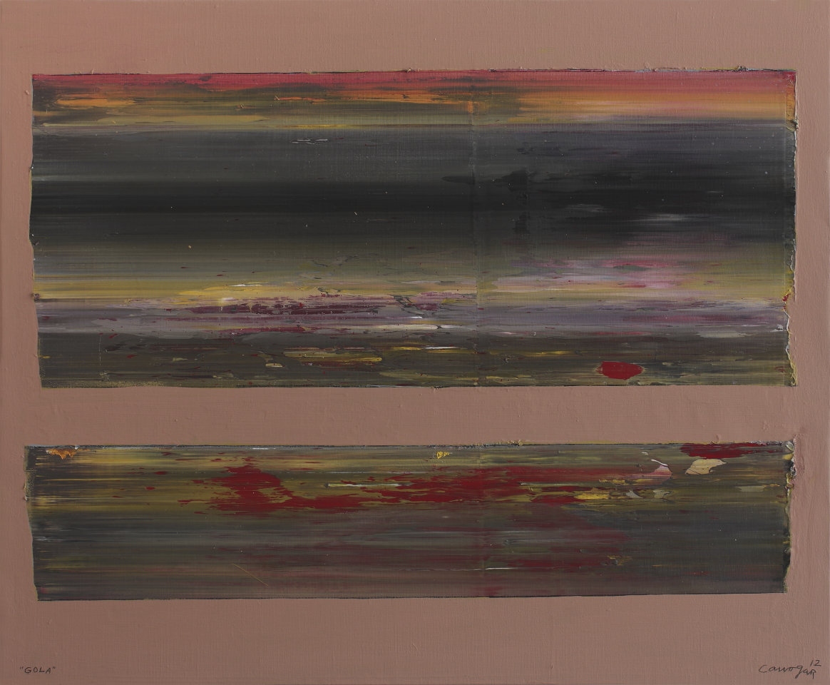 Firmado y fechado zona. inf. dcha.: “12/Canogar”; inscripción zona inf. izda.: “‘GOLA’”