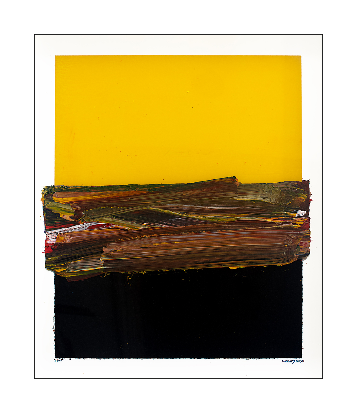 Firmado y fechado zona. inf. dcha.: “Canogar ´20”; inscripción zona inf. izqda.: “SENO”