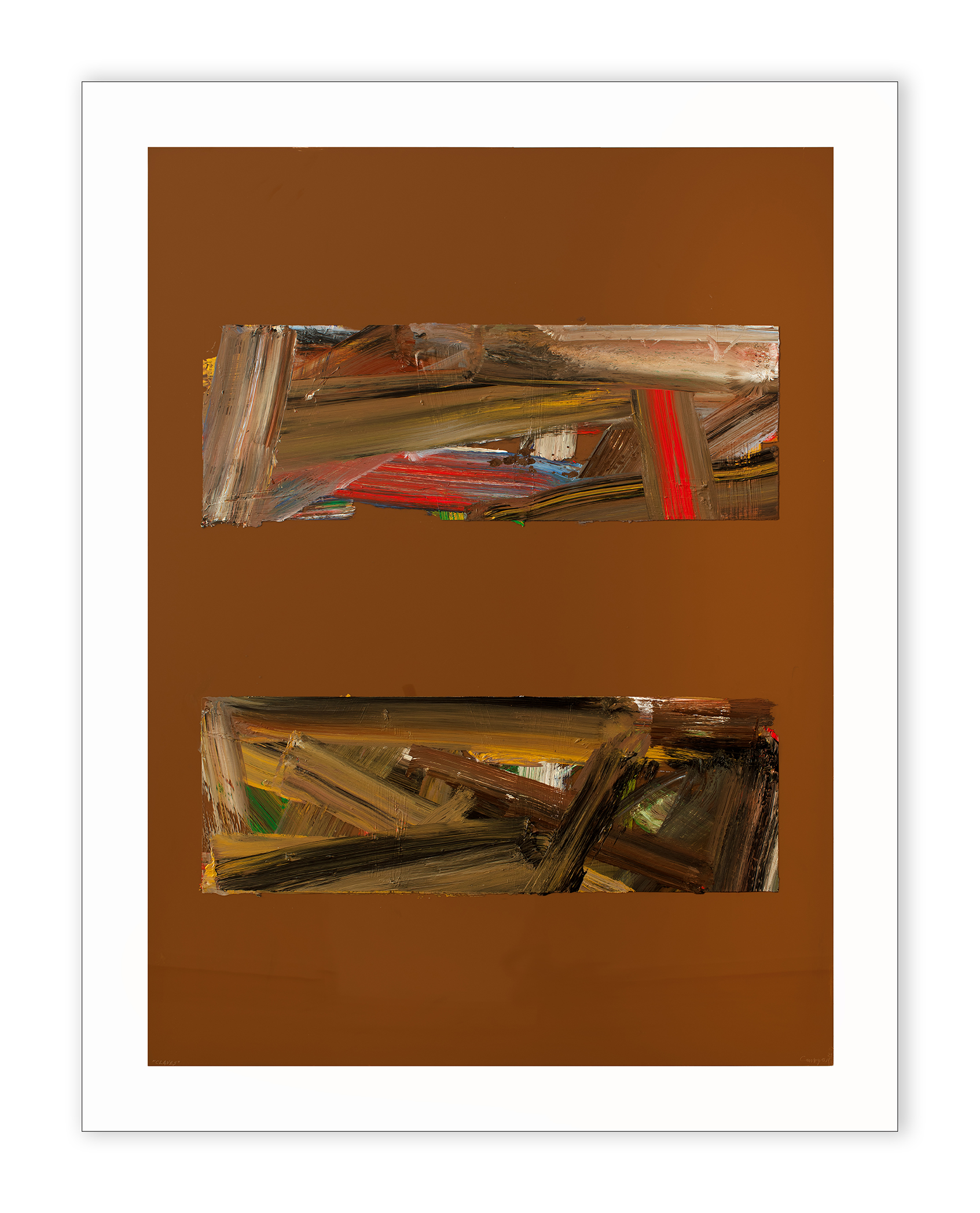 Firmado y fechado zona. inf. dcha.: “Canogar ´21”; inscripción zona inf. izqda.: “CLAVES”