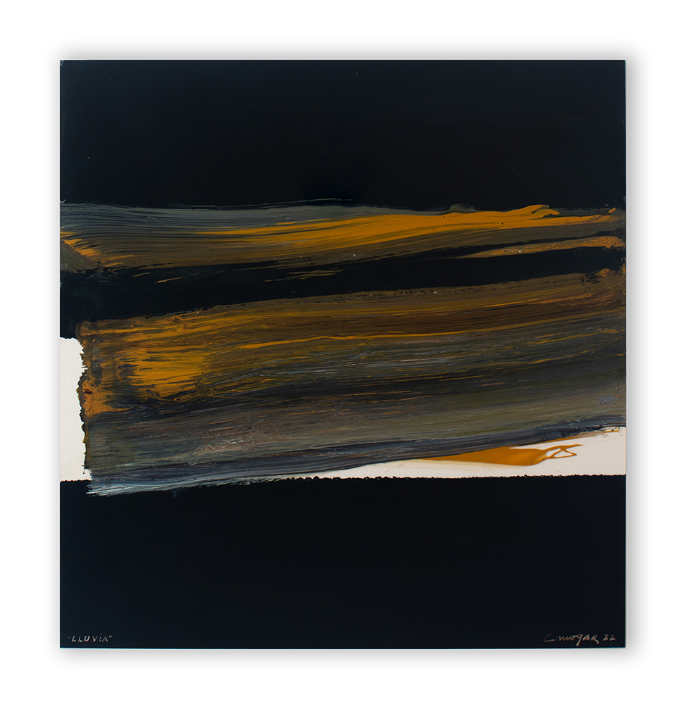 Firmado y fechado zona. inf. dcha.: “Canogar ´22”; inscripción zona inf. izqda.: “LLUVIA”